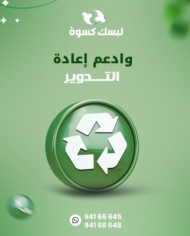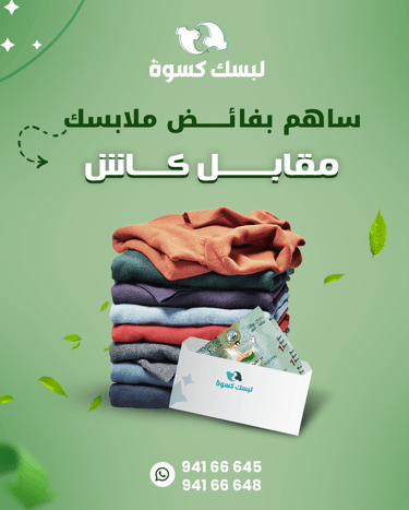 "لبسك كسوة شركة كويتية رائدة في جمع وإعادة تدوير الملابس المستعملة، تقدم حلولاً مبتكرة وصديقة للبيئة تعيد للملابس قيمة جديدة وتساهم في بناء مستقبل أكثر استدامة."